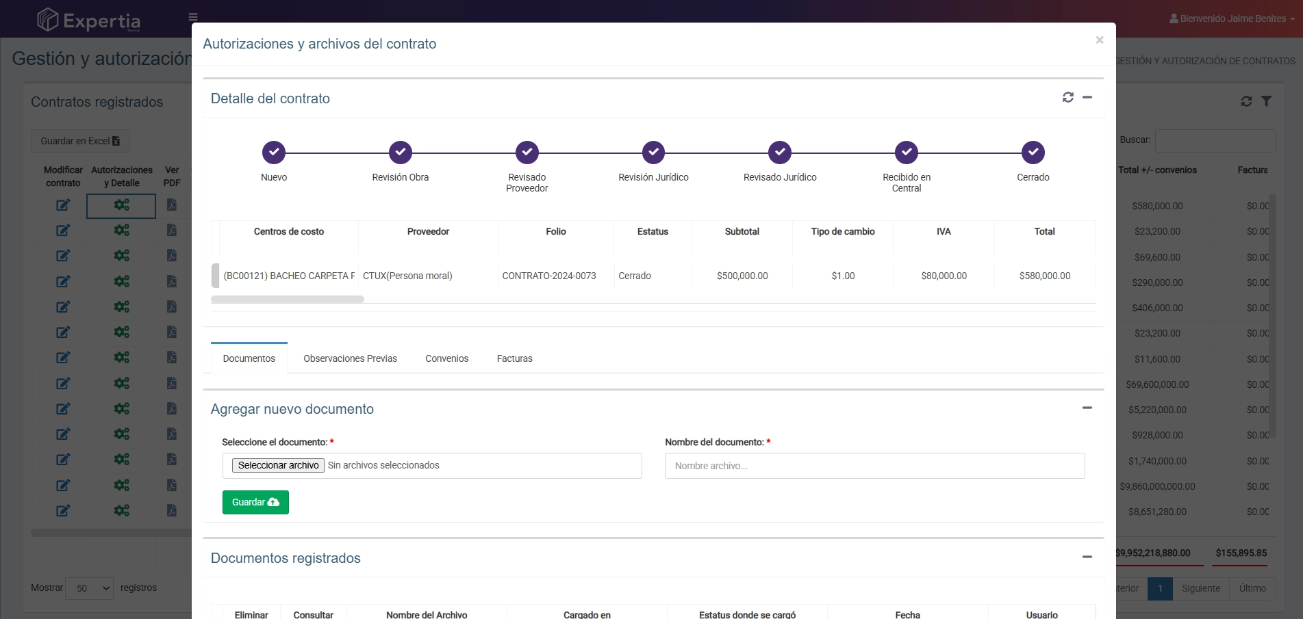Gestiona y automatiza contratos con proveedores y clientes en un solo lugar. Define flujos de aprobación, firma digital y alertas de vencimiento para evitar riesgos y asegurar cumplimiento.